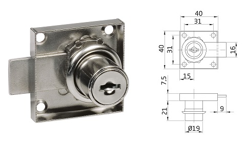 CERRADURA MUEBLE 1A 40X40 MM NIQUEL