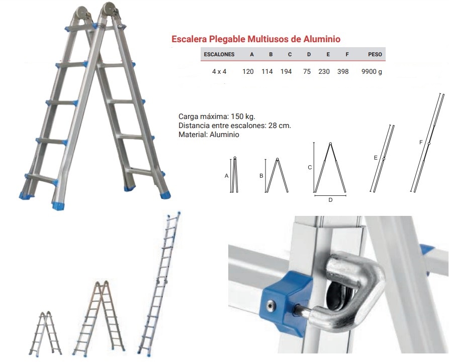 ESCALERA ALUMINIO PLEGABLE MULTIUSOS 4X4